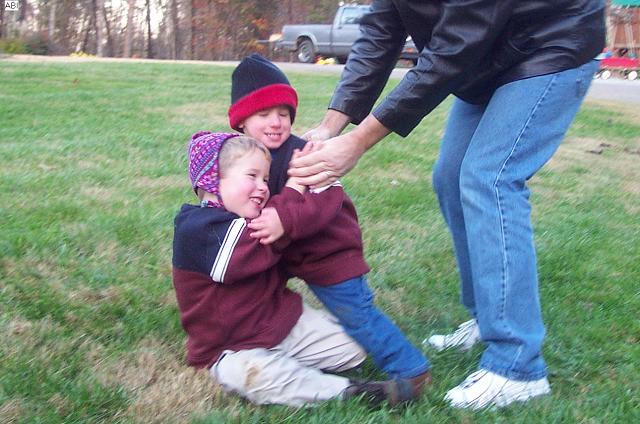 boys wrestle outside