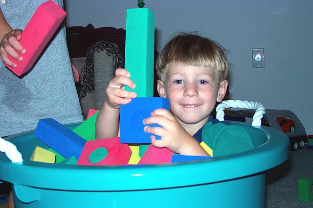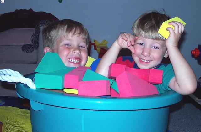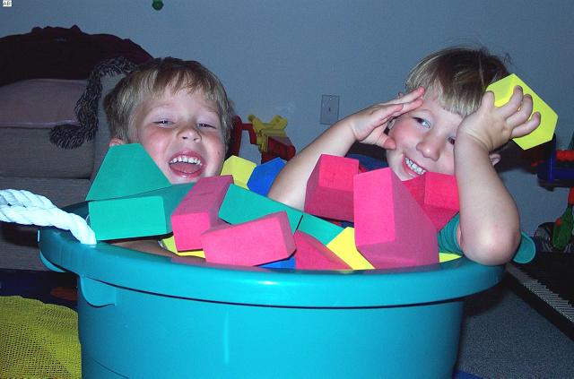 laughing boys in blocks