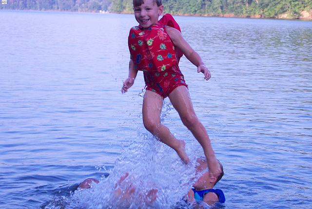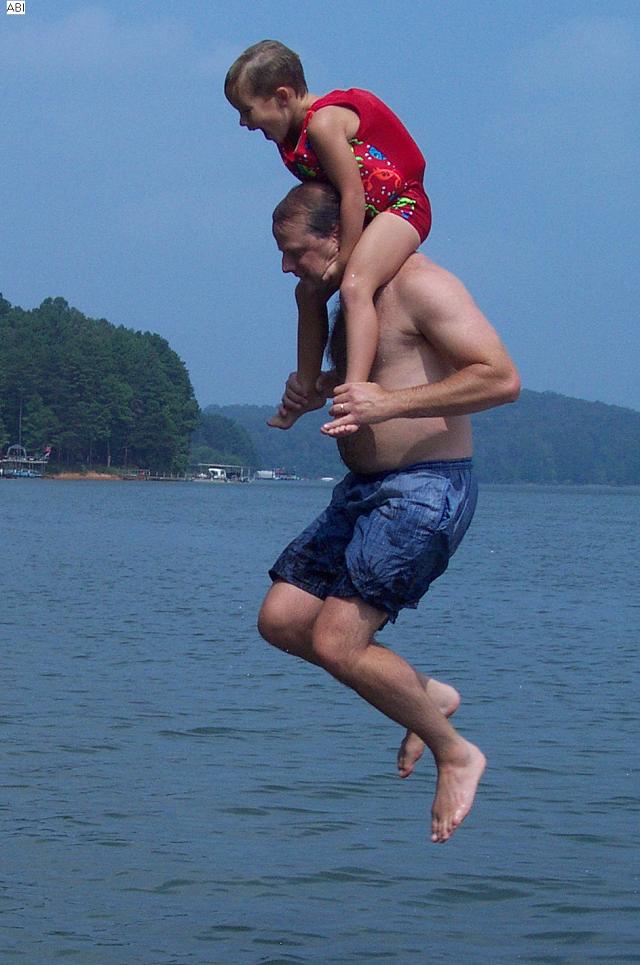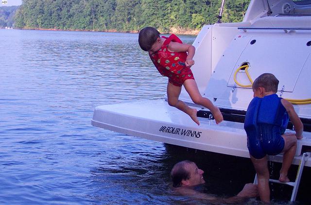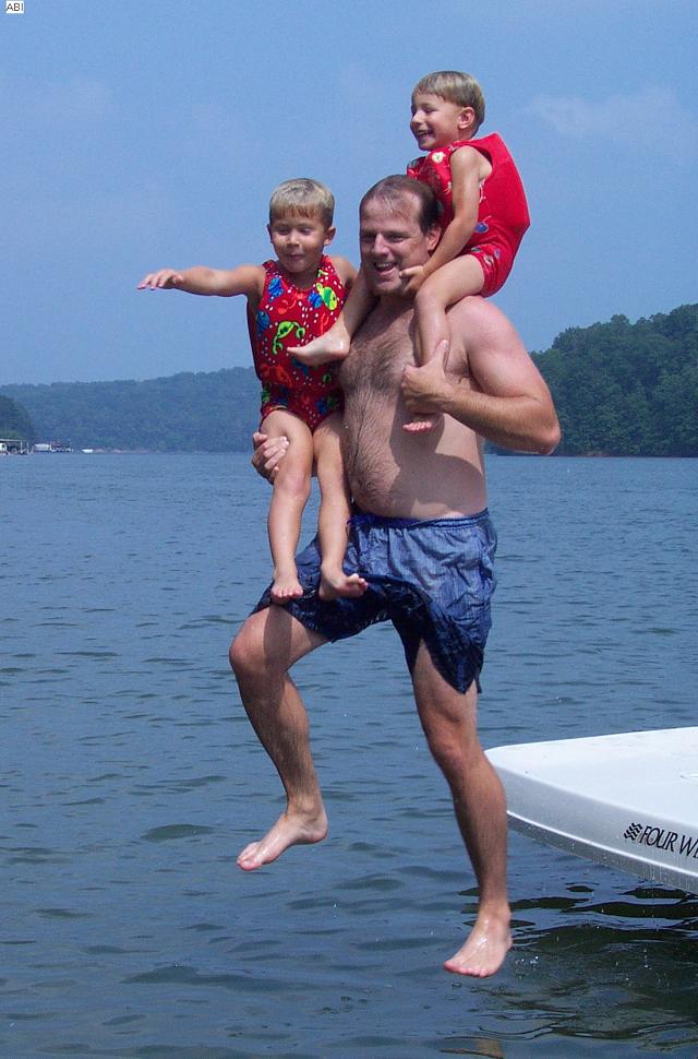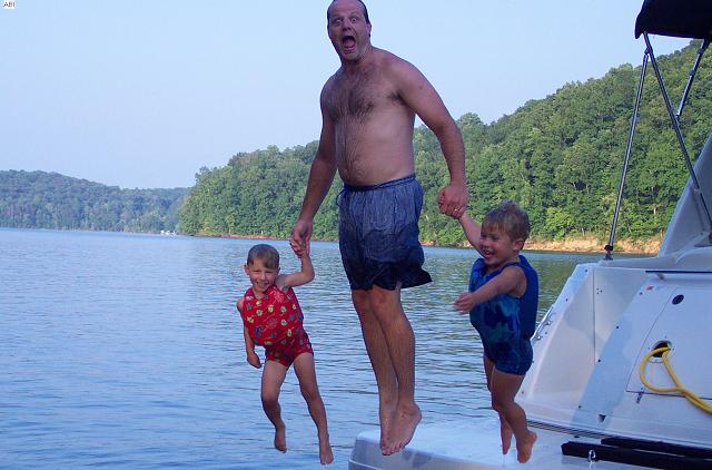 dad & boys jump off boat