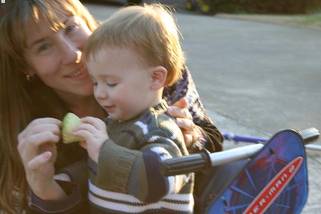 mom & benjamin eat apple