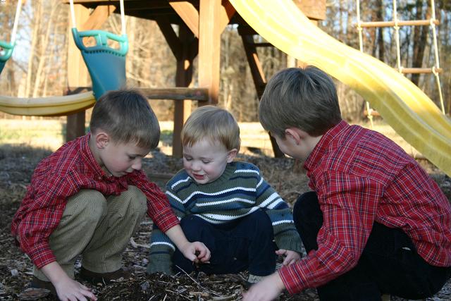 three boys in tunnel