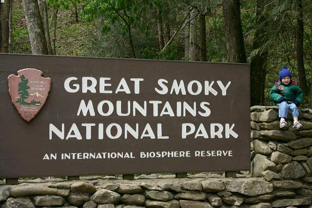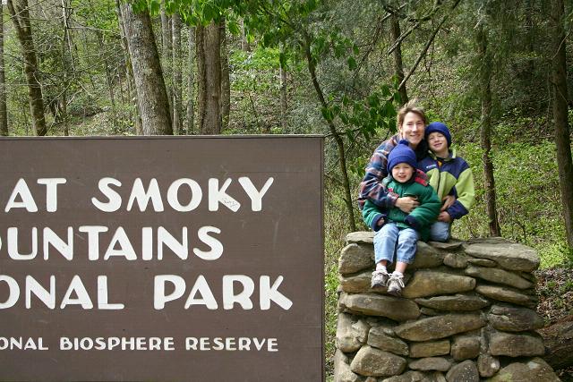 mom & kids by the park sign