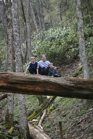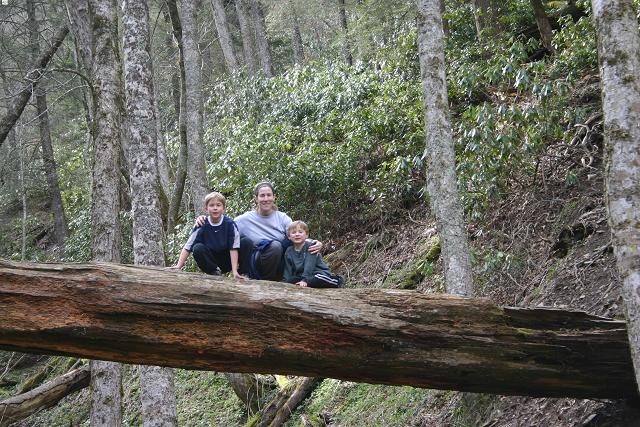 mom sean & ben on log