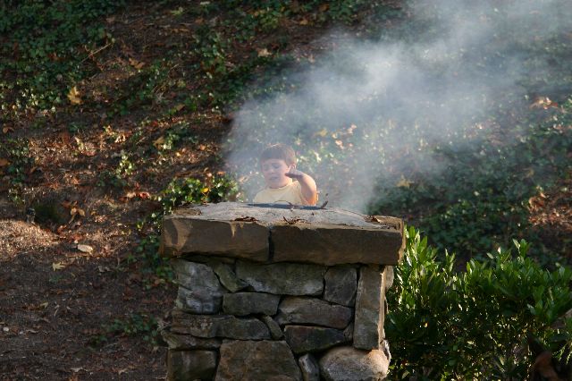 hiding by the chimney