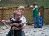 Mama and son sitting on the rail